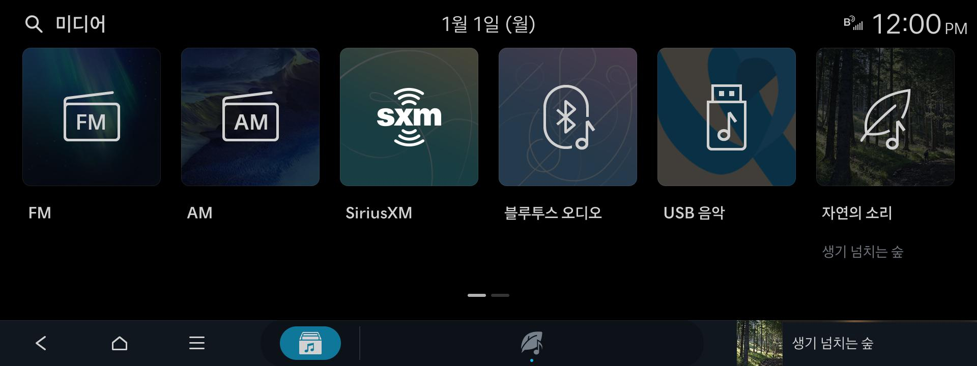 - 오디오 앱 이용 중에는 화면 아래 탭의 가장 왼쪽에 항상 표시되는 미디어 홈 아이콘을 이용해 미디어 홈으로 이동 가능합니다