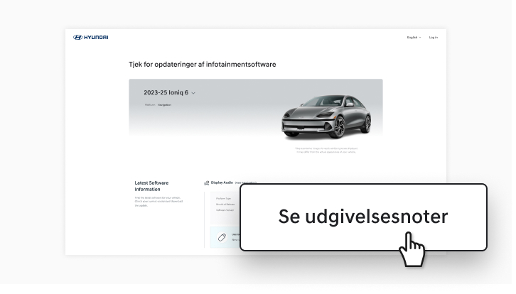 - Brug [Søg efter tilgængelige softwareopdateringer] på startskærmen for at finde den nyeste software til dit køretøj.
