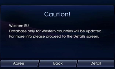 - Navigationssystemet kan også lukke ned, hvis motoren startes, mens opdateringen er i gang, med tændingsknappen i TÆND-positionen.