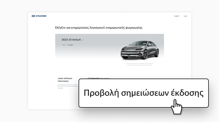 - Χρησιμοποιήστε την επιλογή [Έλεγχος για διαθέσιμες ενημερώσεις λογισμικού] στην αρχική οθόνη ώστε να βρείτε το πιο πρόσφατο λογισμικό για το όχημά σας.