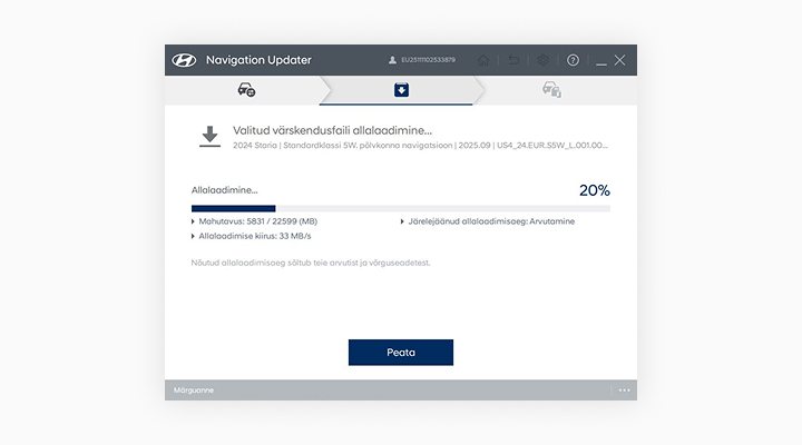 1. Uuendus on võimalik ainult siis, kui navigatsioonisüsteem on sisse lülitatud.