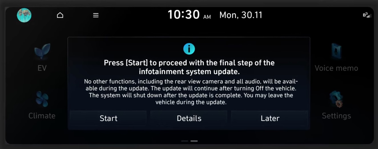 - Käytä [Tarkista saatavilla olevat ohjelmistopäivitykset] aloitusnäytössä löytääksesi autosi uusimman ohjelmiston.
