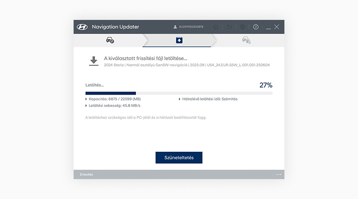 1. A frissítés csak akkor végezhető el, ha a navigációs rendszer be van kapcsolva.