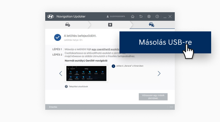 "Helyezze az adathordozót (USB) a járművébe és végezze el a frissítést.Az utasítások lejjebb találhatók."
