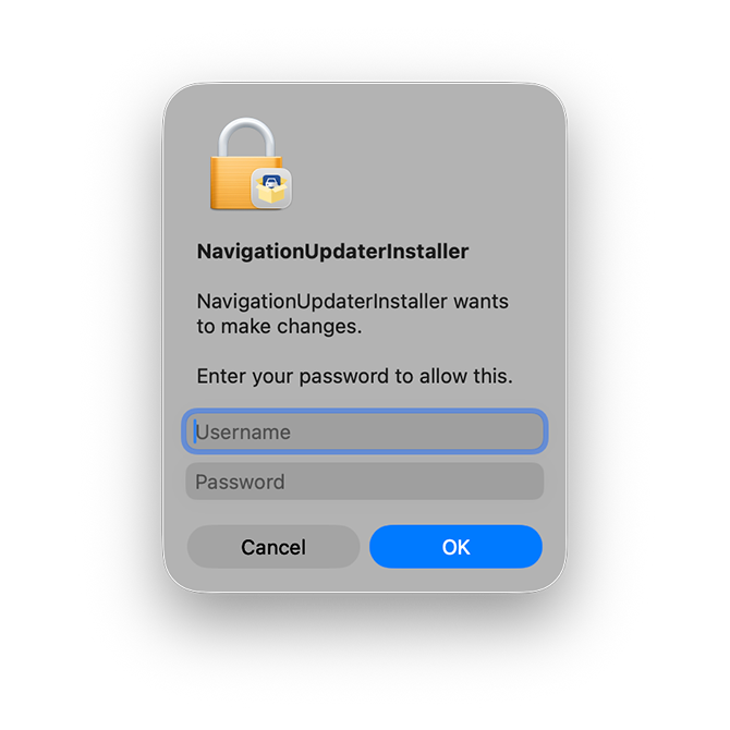 Geef de app toestemming om de juiste wijzigingen aan te brengen door de gebruikersnaam en het wachtwoord van uw Apple-computer in te voeren.