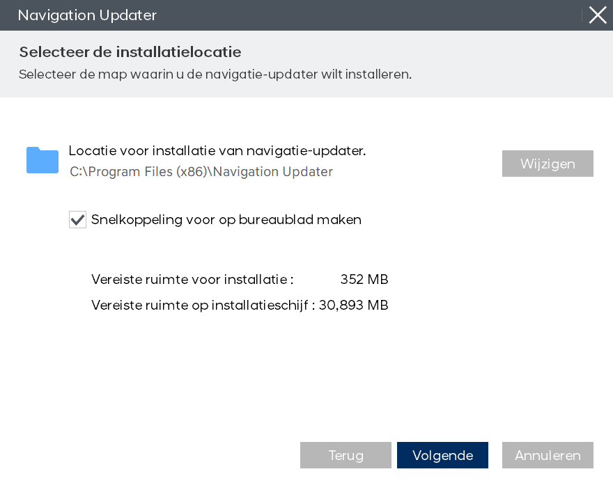 - ※ Als de pc het herkent als een lokale schijf in plaats van een verwisselbare schijf, kan het kopiëren van bestanden via Navigation Updater mogelijk niet doorgaan.
