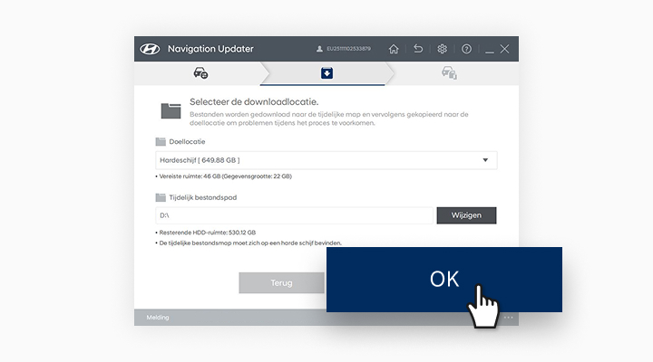 - Heeft u uw voertuig gevonden? Klik op de knop [Downloaden] om de geïnstalleerde Navigation Updater te starten.