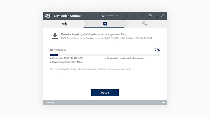 "Neem het draagbare apparaat (USB) mee naar uw voertuig en ga verder met het updateproces.De instructies worden hieronder gegeven."