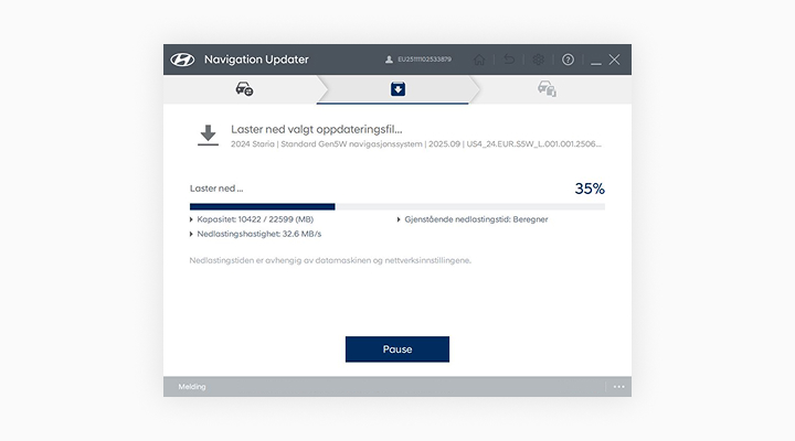 1. Oppdateringen kan bare utføres mens navigasjonssystemet er slått på.