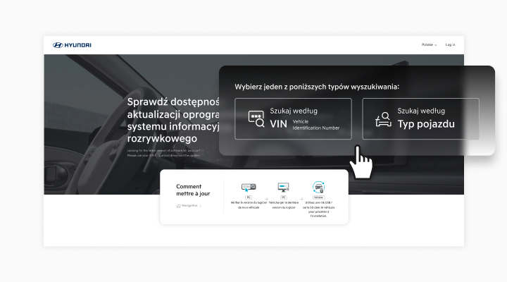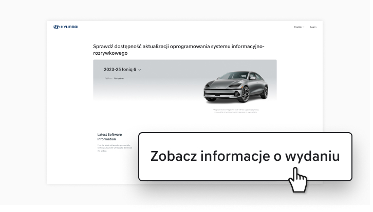 - Użyj opcji [Sprawdź dostępne aktualizacje oprogramowania] na ekranie głównym, aby znaleźć najnowsze oprogramowanie dla swojego pojazdu.