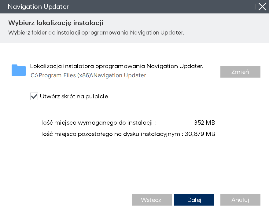 Wybierz lokalizację, w której program zostanie zainstalowany, a następnie kliknij przycisk „Dalej”, aby kontynuować instalację.