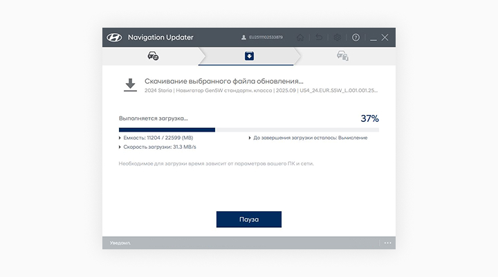 1. Обновление можно выполнить только при включённой навигационной системе.