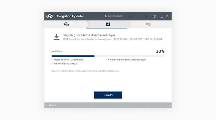 - Dikkat: Aracın akü gücünü kullanıyorsanız, güncellemeye devam etmeden önce akünün yeterli şarja sahip olduğundan emin olun.