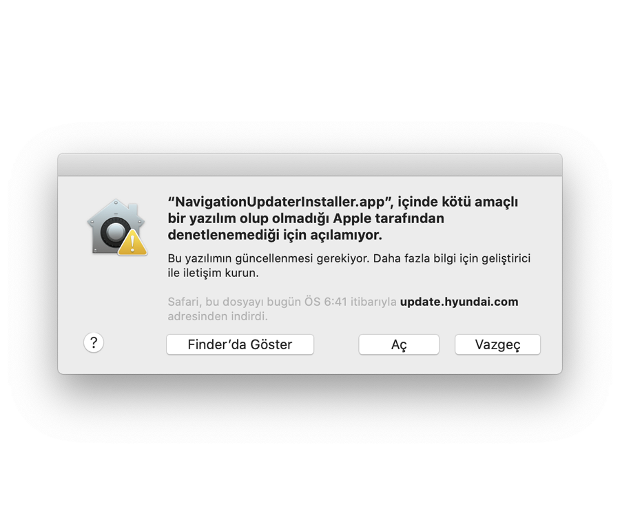 [Güvenlik ve Gizlilik] > [Genel] > [Uygulamaların indirilmesine izin ver] bölümünde "Yine de Aç" düğmesine tıklayın.