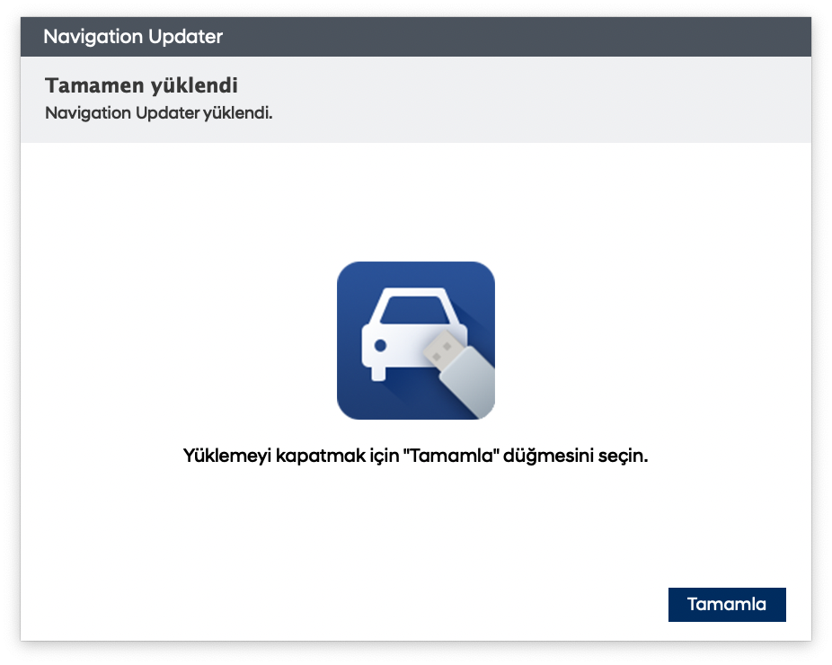 "Lütfen taşınabilir aygıtı (USB) aracınıza götürün ve güncelleme işlemine devam edin.Talimatlar aşağıda verilmiştir."