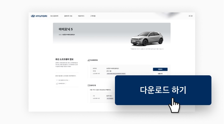 - 홈 화면 [내 차 맞춤 업데이트 조회]를 이용해 내 차에 맞는 최신 소프트웨어를 조회합니다.