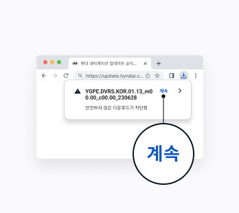 - 웹 브라우저(Chrome, Microsoft Edge 등)에서 다운로드를 진행합니다.Chrome알림 없이 바로 다운로드가 진행됩니다.단, 아래 팝업이 노출되는 경우 ‘계속’을 선택하여 다운로드를 진행해주십시오.다운로드가 완료되면, ‘폴더 열기’를 선택해주세요.