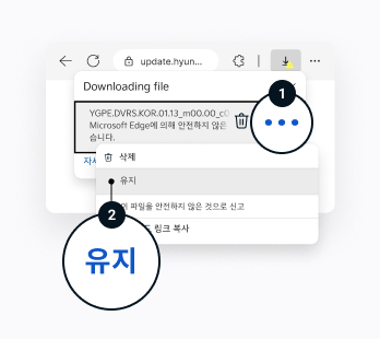 Edge알림 없이 바로 다운로드가 진행됩니다.단, 아래 팝업이 노출되는 경우 ‘계속’을 선택하여 다운로드를 진행해주십시오.다운로드가 완료되면, ‘폴더 열기’를 선택해주세요.