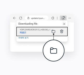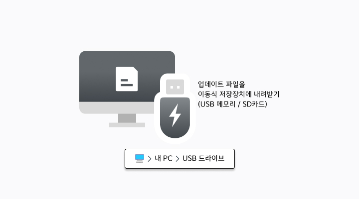 - 다운로드 완료 시, 다운로드 받은 파일을 USB 메모리의 최상위 폴더(내 PC > USB 드라이브)에 복사해주세요.다운로드 파일은 별도의 절차(압축 해제, 파일명 변경 등) 없이 바로 USB 메모리의 최상위 폴더에 저장해주세요.