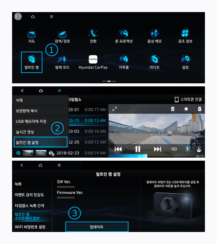 빌트인캠 1 업데이트를 위해