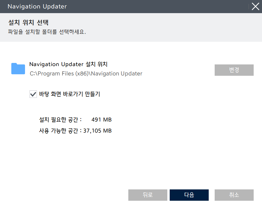 프로그램을 설치할 위치를 선택한 뒤, "다음" 버튼을 클릭하면 설치가 진행됩니다.