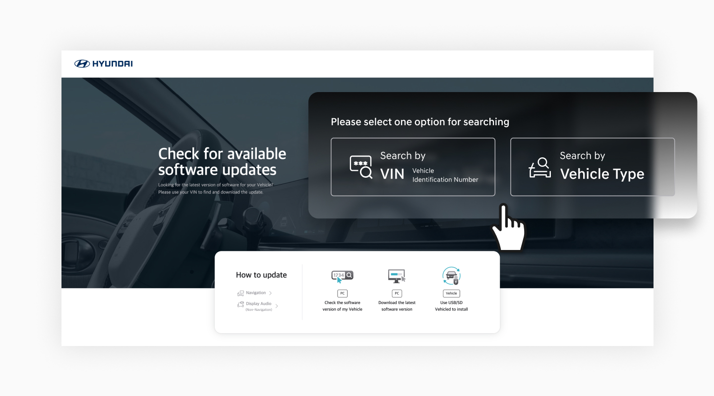 Please take the portable device(USB) to your vehicle and proceed with the updating process. Instructions are provided below.